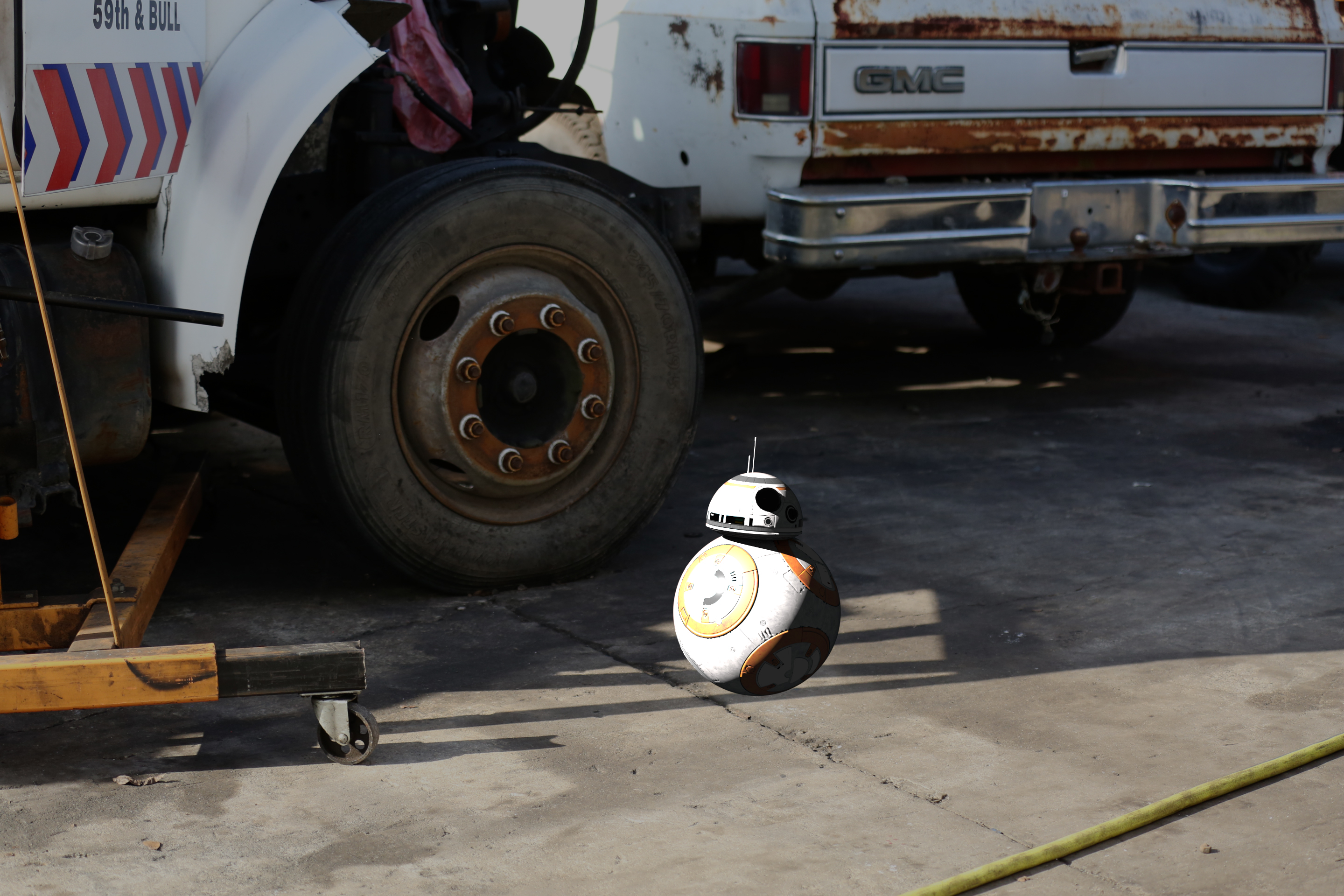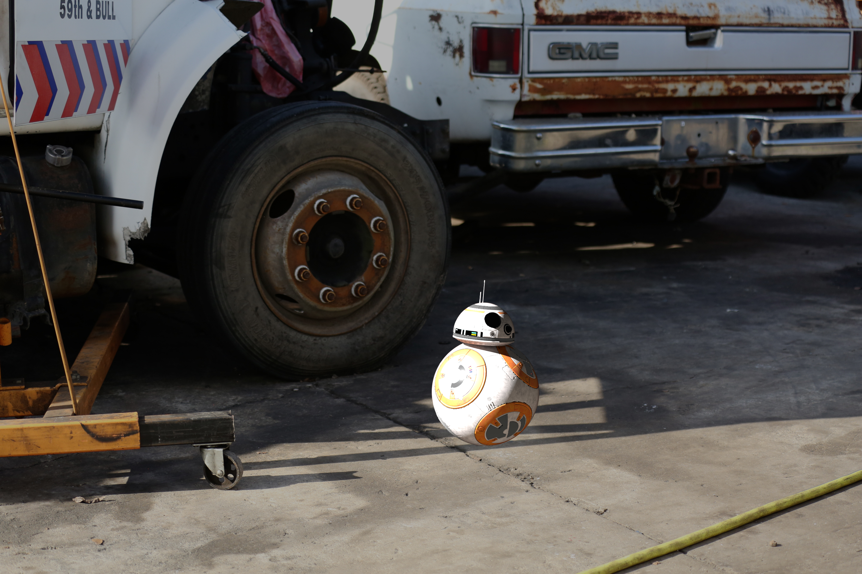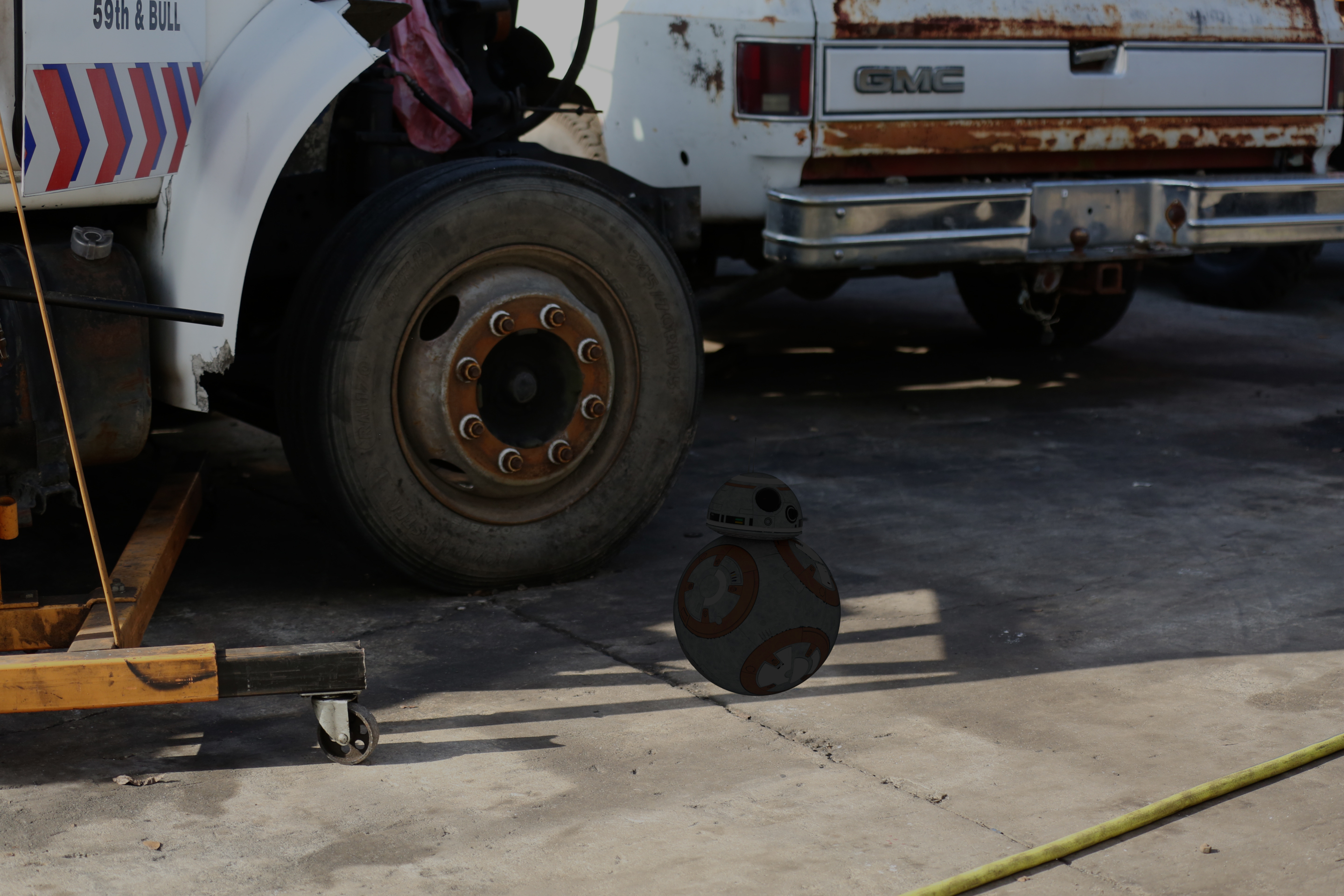 This is an integration shot. The photo was shot with a Canon 5D with integration kids: Chrome ball, grey ball, cubes. HDRI was also shot at the location with the use of chrome ball. The model was from CG trader. It was textured by me and rendered in Arnold. The integration was done in Nuke .